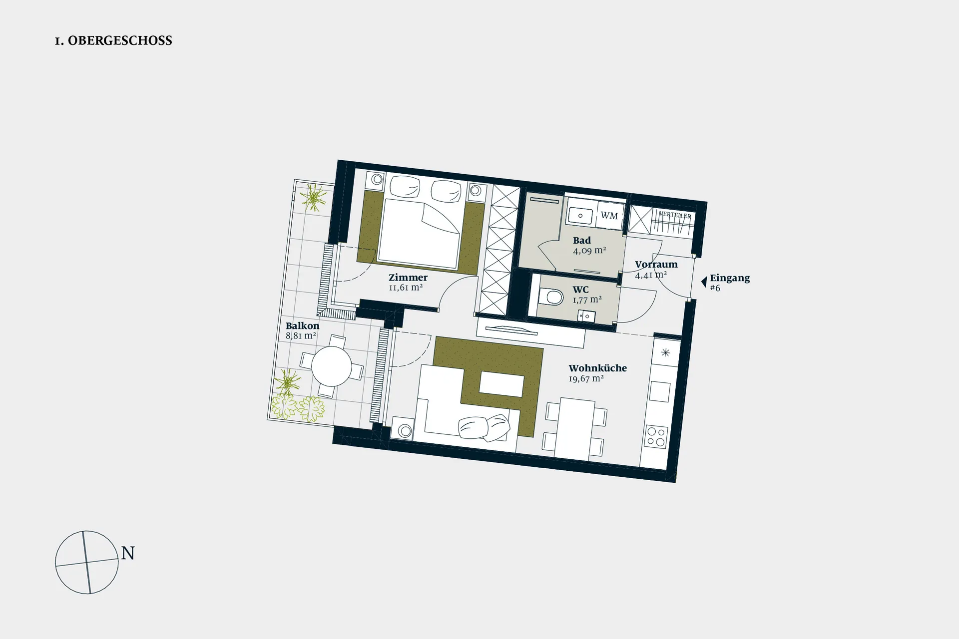 | OG1 | 1 | 6 | 2 | 41,55 m² | - | - | 8,81 m² | - | 8,81 m² | 340.500 € | 369.800 € | ||