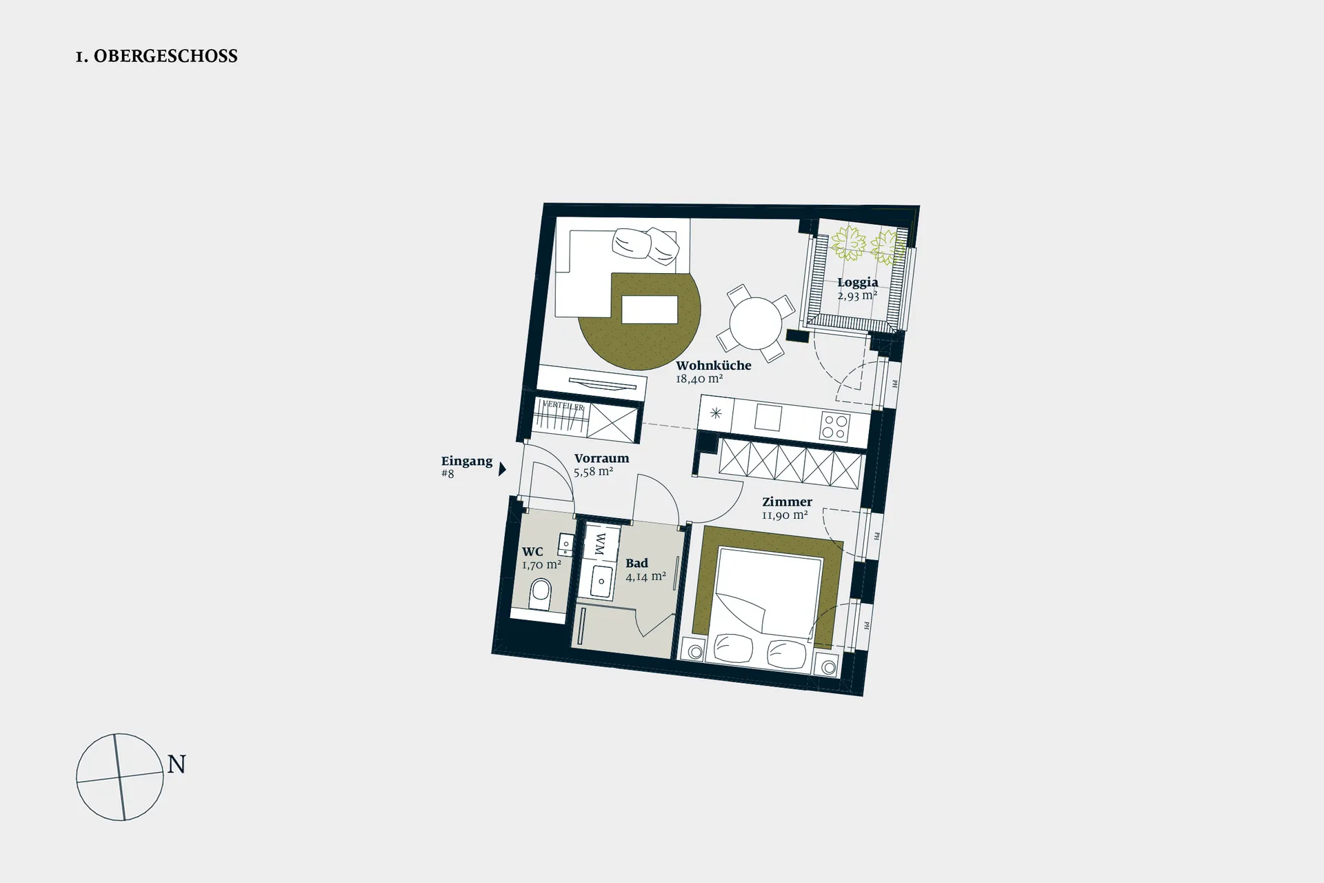 | OG1 | 1 | 8 | 2 | 41,72 m² | - | 2,93 m² | - | - | 2,93 m² | 323.100 € | 354.600 € | ||