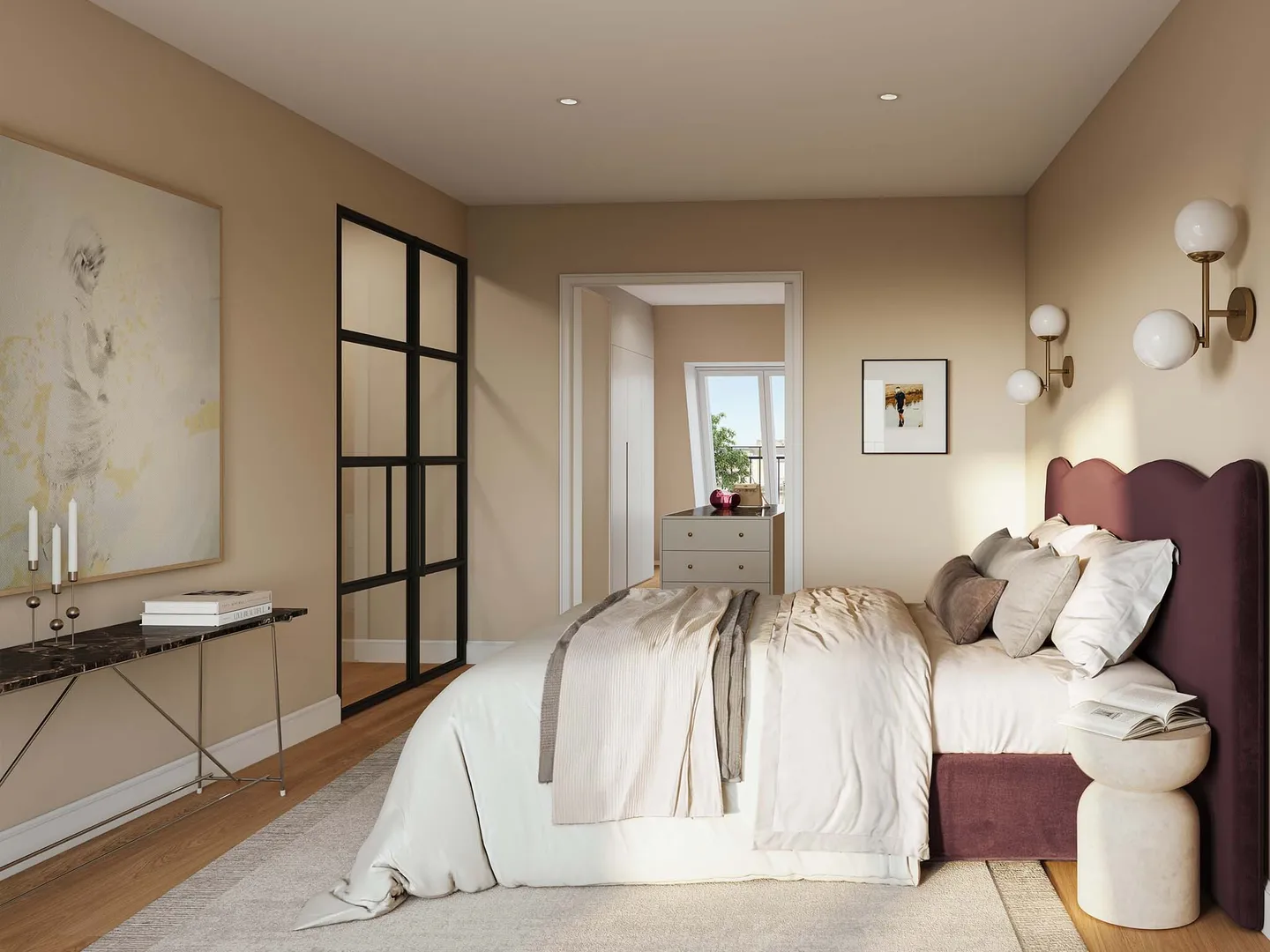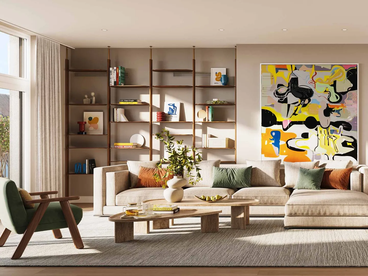 Im geschützten Innenhof befindet sich der Bauteil ELA – das ruhige Pendant. Zurückhaltend und harmonisch eingebettet ins Grün, bietet der Solitär großzügige Wohnungen mit Garten oder Terrasse und strahlt eine ruhige, geradezu meditative Atmosphäre aus.