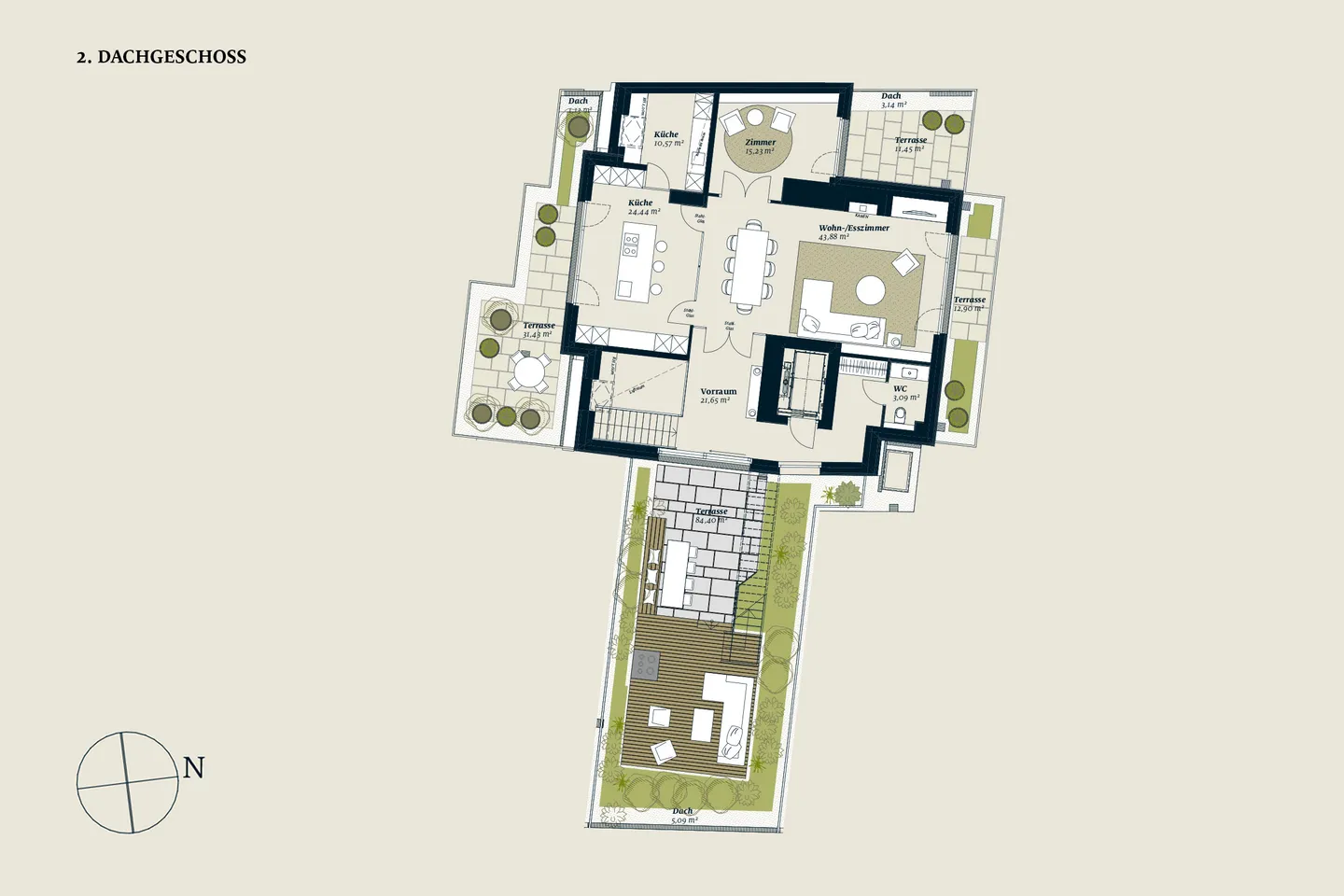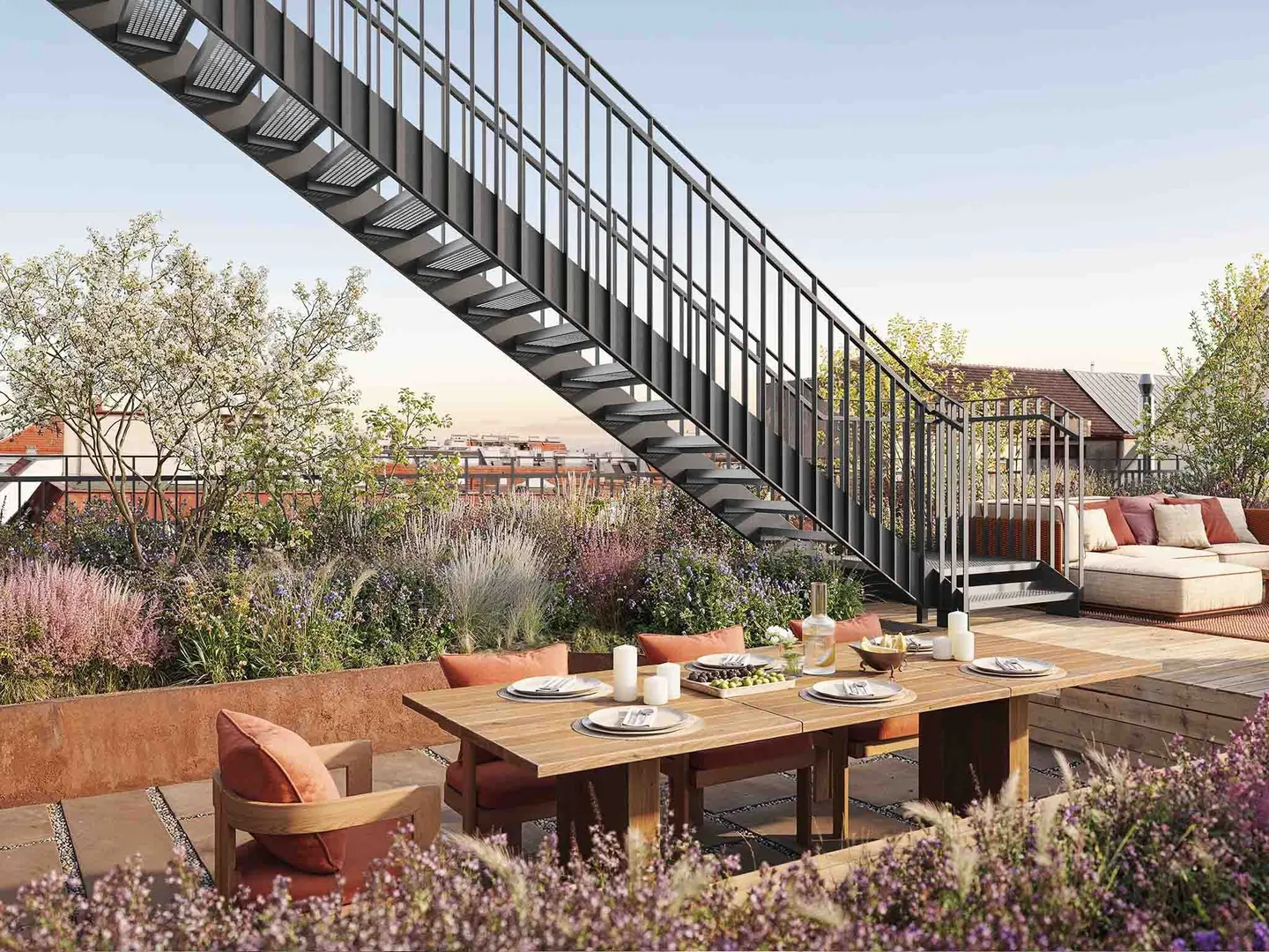 Ganz oben angekommen: In der Penthouse-Maisonette des straßenseitigen Bauteils MICHA verschmelzen Privatsphäre und exklusives Design zu einem Ort der Ruhe und des erhabenen Ausblicks. Auf zwei Wohnebenen (1. und 2. Dachgeschoss) und einer Dachterrasse werden entfaltet sich ein Wohnkonzept, das in Wien seinesgleichen sucht. Atemberaubende Ausblicke in alle Himmelsrichtungen, ein privater Rooftop-Pool, hochwertige Materialien und nachhaltige Geothermie-Energieversorgung machen diese Immobilie zu einem Ort, an dem Wohnen zum Erlebnis wird.